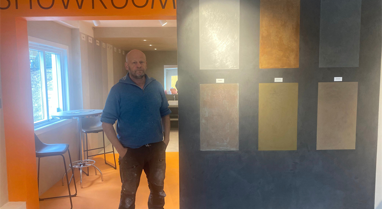 – Jan Hinkel ved Dekorhuset Oslo, foreslo at jeg heller burde åpne selv, og det gjorde jeg nå i januar! Jeg syns produktet var alt for lite tilgjengelig for kunder og håndverkere, så det var derfor jeg rett og slett valgte å åpne en filial her i Tønsberg, forteller Jim.