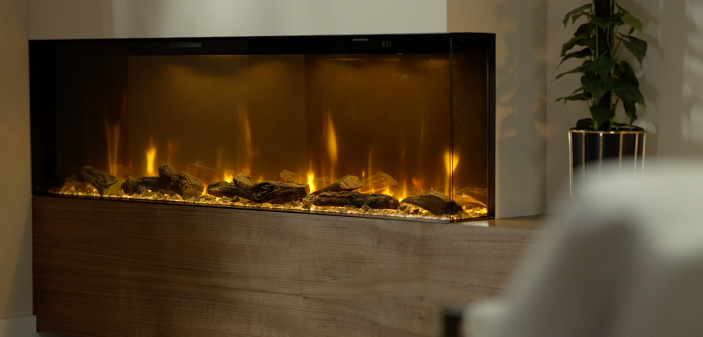 Opti-V er den mest autentiske peisen i Dimplex’ sortiment. Ved hjelp av en høyoppløselig film som projiseres via en monitor på en vinklet glassplate, gir den illusjonen av et ekte bål. Den rimeligste og mest lettinstallerte modellen er derimot Dimplex Ignite Evolve 50, som Tolcon selger mye av fordi den bare er 15 centimeter dyp.
